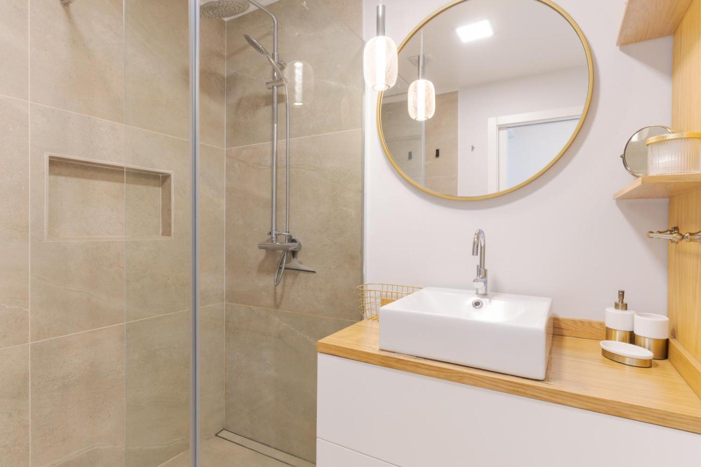 Apartment. This spacious apartment comprises a kitchen, a seating area, 2 separate bedrooms and 2 bathrooms with a shower and a hairdryer. Meals can be prepared in the well-fitted kitchen, which comes with a stovetop, a refrigerator, a dishwasher and kitchenware. The air-conditioned apartment provides a TV, a washing machine, soundproof walls, a tea and coffee maker as well as sea views. The unit offers 3 beds.