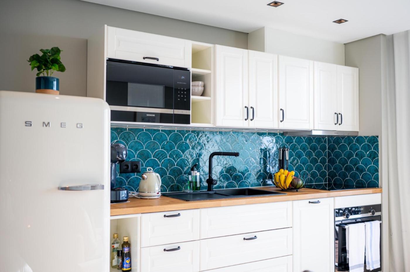 One-Bedroom Apartment. This air-conditioned apartment is comprised of 1 living room, 1 separate bedroom and 1 bathroom with a walk-in shower. Guests can make meals in the kitchenette that is fitted with a stovetop, a refrigerator, a dishwasher and kitchenware. This apartment features a washing machine, flat-screen TV, sea views, as well as winechampagne for guests. The unit offers 2 beds.