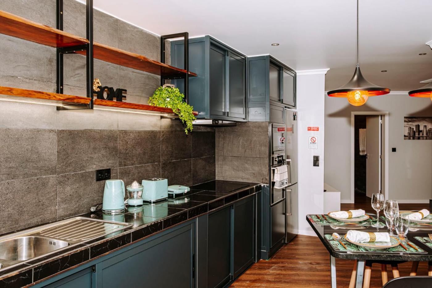 Two-Bedroom Townhouse. This air-conditioned holiday home comes with 1 living room, 2 separate bedrooms and 2 bathrooms with a shower. Guests will find a stovetop, a refrigerator, kitchenware and an oven in the fully equipped kitchen. The holiday home also includes a barbecue. This holiday home has a washing machine, a tea and coffee maker, TV with cable channels, as well as fruit for guests. The unit has 3 beds.